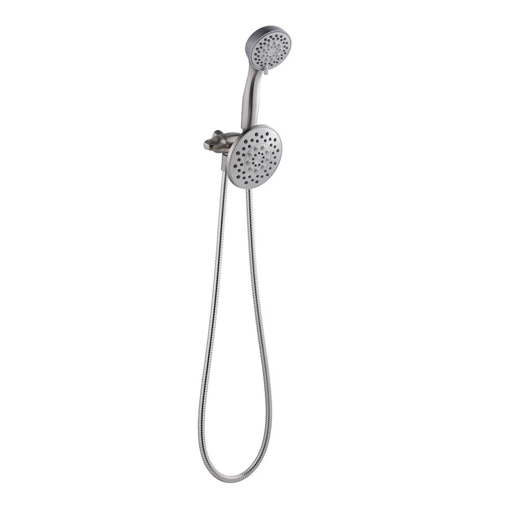 The Glacier Bay 6-Spray Handheld Hand Shower with Pause feature and 1-Spray Showerhead Combo Kit in Brushed Nickel combines style and convenience to bring you relaxation and ease. WaterSense certified with a 1.8 GPM to ensure a steady flow rate time, this kit Includes a 60 in. anti-twist hose for convenient mobility and a 3-way diverter. Six different functions for the handshower, including Massage, Full and Massage, Full, Full and Power, Power and the Pause feature help you customize your shower experience. Brushed rub-clean nozzles in the showerhead offer easy maintenance and lasting performance. Coordinate with other pieces from Glacier Bay for a polished and sophisticated look in your bathroom.