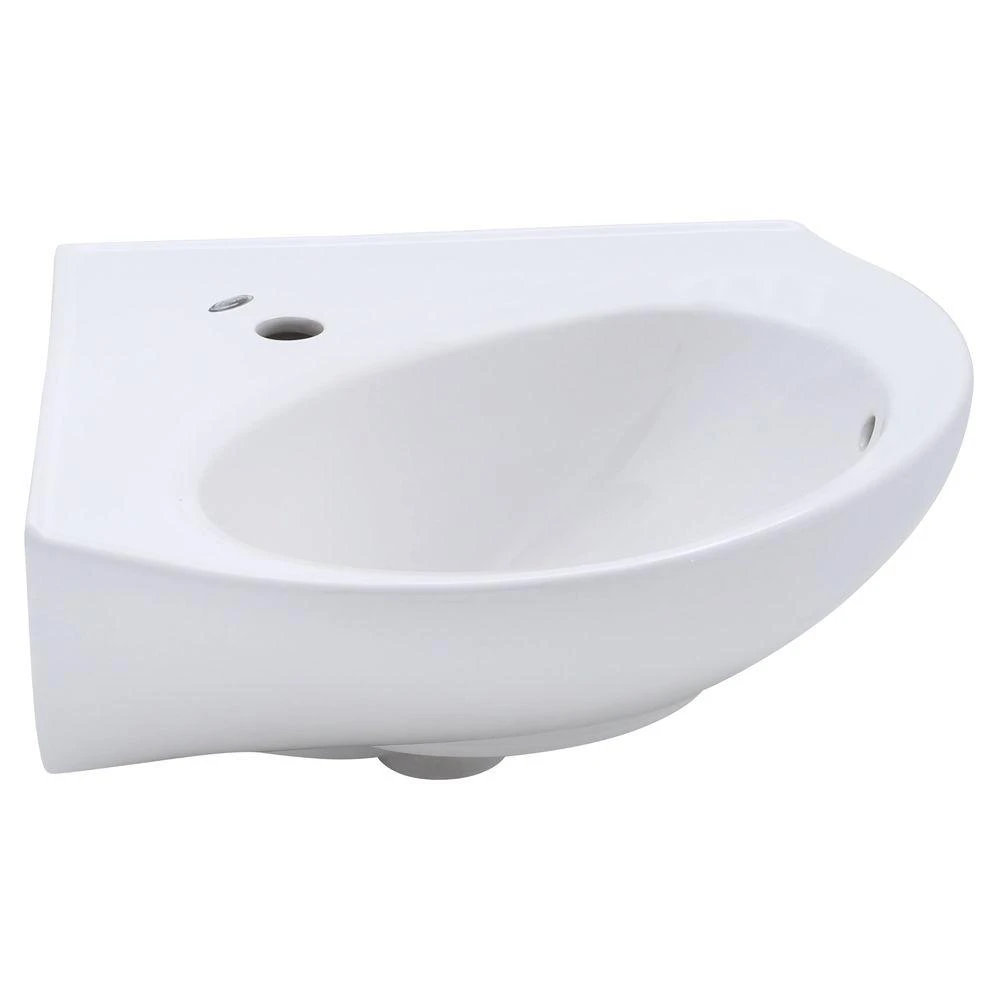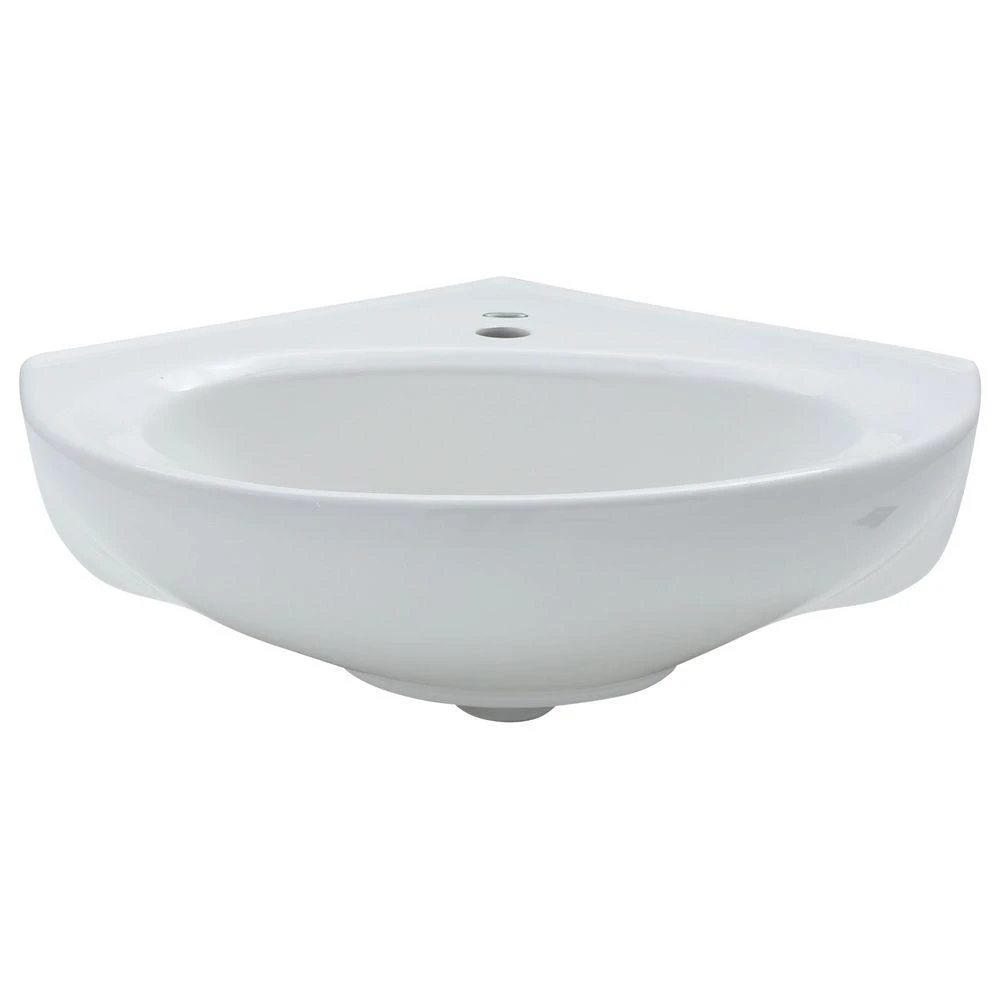 This American Standard Cornice Corner Wall-Mount Vitreous China Bathroom Sink in White features a transitional style that will make your bathroom look and function great. The rim slants toward the basin for quick drainage, and the corner design fits into small spaces. A single predrilled hole accommodates a monoblock faucet (sold separately).