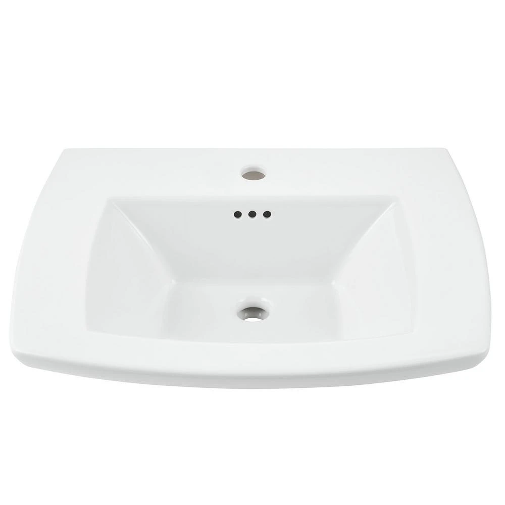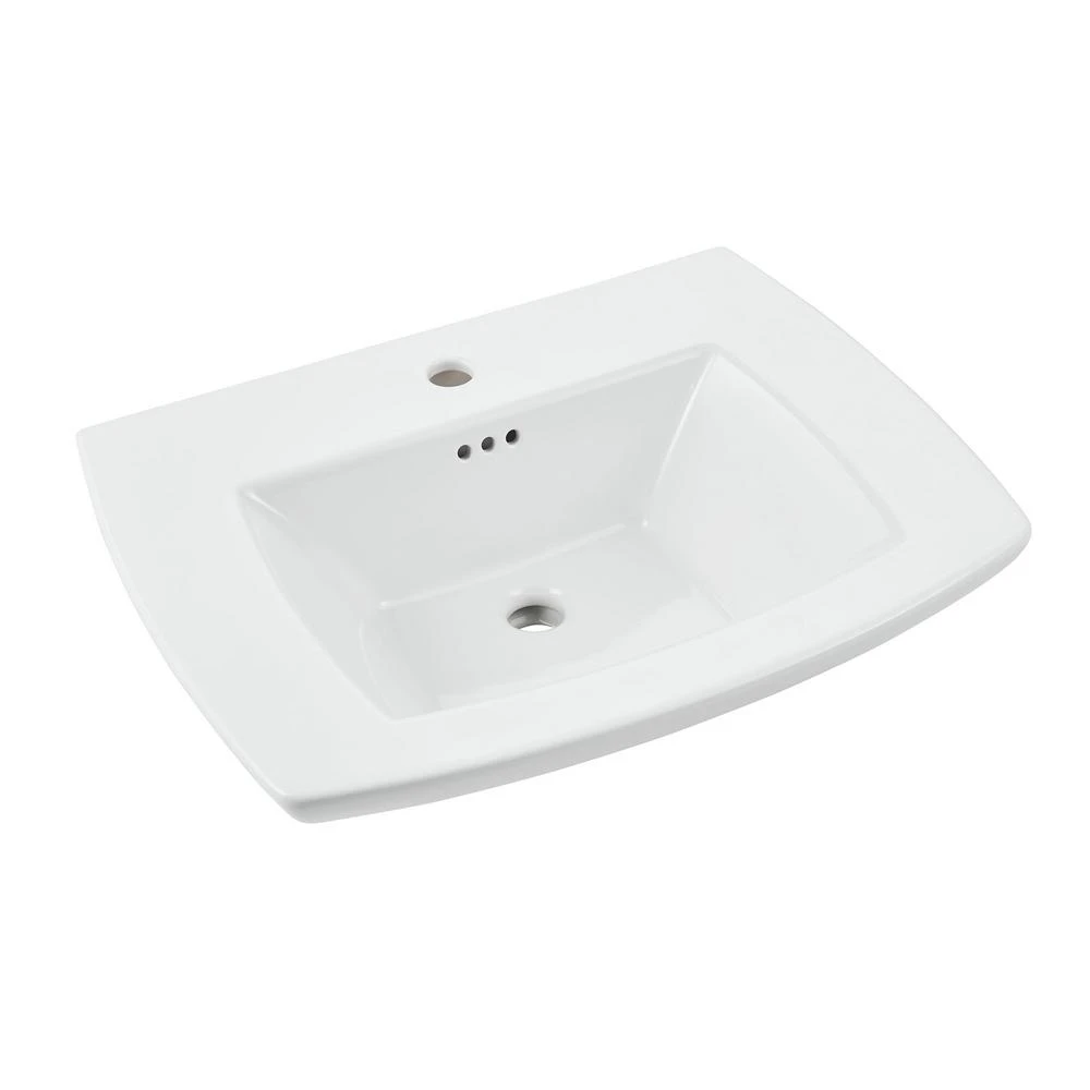 The Edgemere Console Table Top from American Standard has a transitional design that will complement any bathroom. The Edgemere Console Table Top pairs perfectly with the Edgemere Pedestal Bathroom sinks and the Edgemere Pedestal leg to give your bathroom a classic look. The Edgemere Console Table Top coordinates with Edgemere toilets.