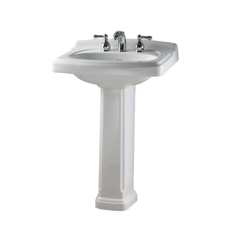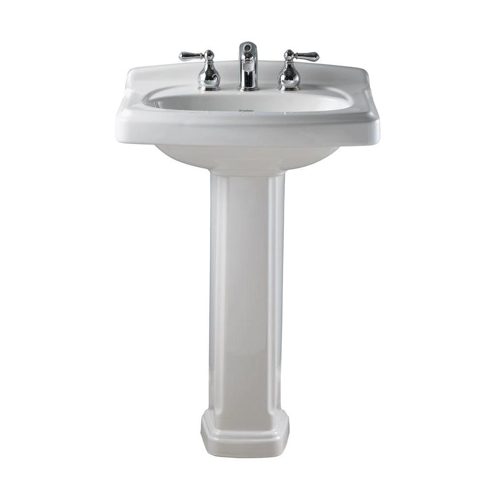 Engineered to provide durability and an elegant appearance, this American Standard Portsmouth vitreous china Pedestal Bathroom Sink Combo in White boasts a vitreous china construction and crisp white finish. The combo features 8 in. faucet drillings for widespread faucet applications (faucet sold separately) to achieve your desired look.