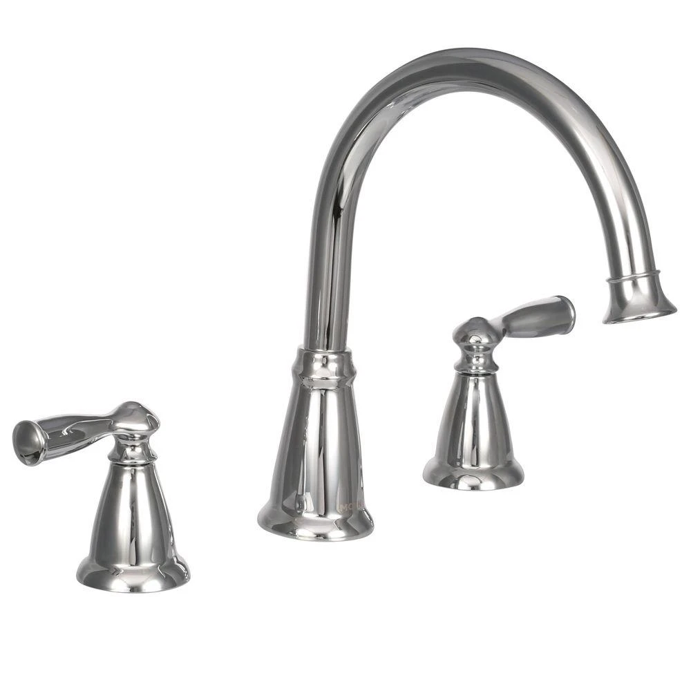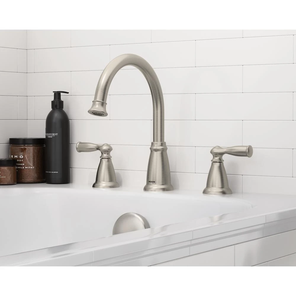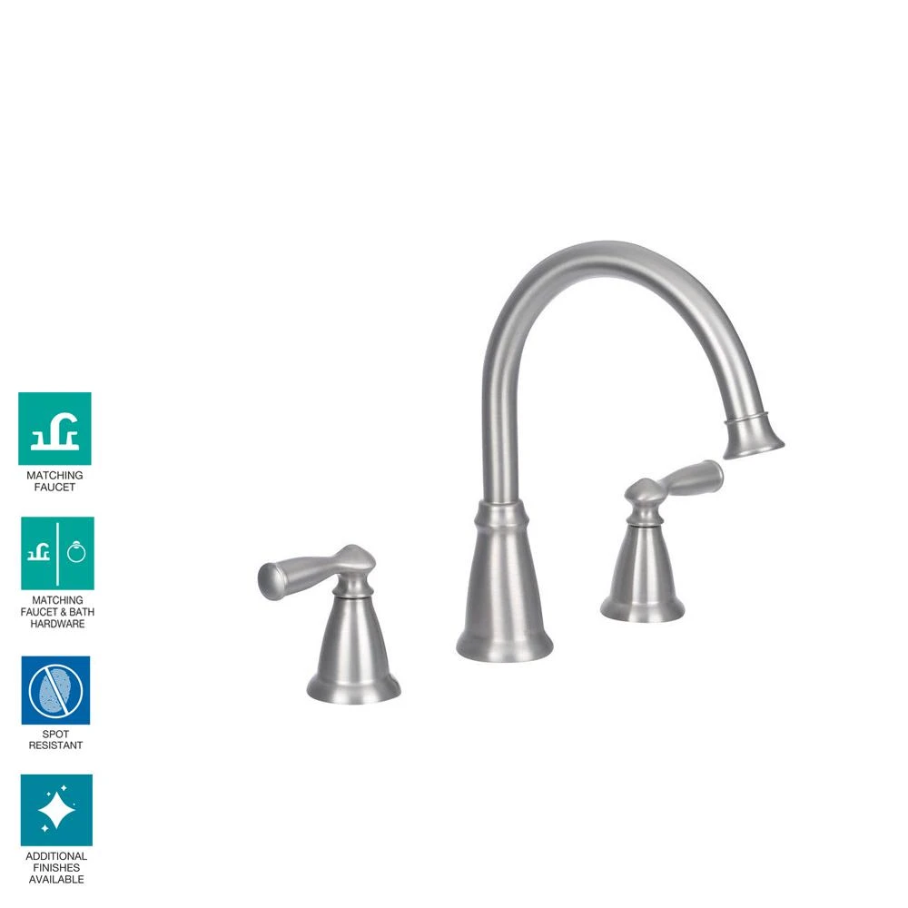 The MOEN Banbury 2-Handle Deck-Mount Roman Tub Faucet in Brushed Nickel offers a timeless and traditional look that is both classic and sensible. The faucet features an innovative Spot Resist finish to avoid fingerprints and water spots to maintain the brilliance of the original finish and easily wipe clean. The faucet also has a high arc spout for extra clearance. Complete the look of your bath with the full line of Banbury faucets and bath accessories.
