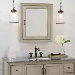 Hazelton 24 In. W X 28 In. H Framed Surface-Mount Bathroom Medicine Cabinet In Antique Grey