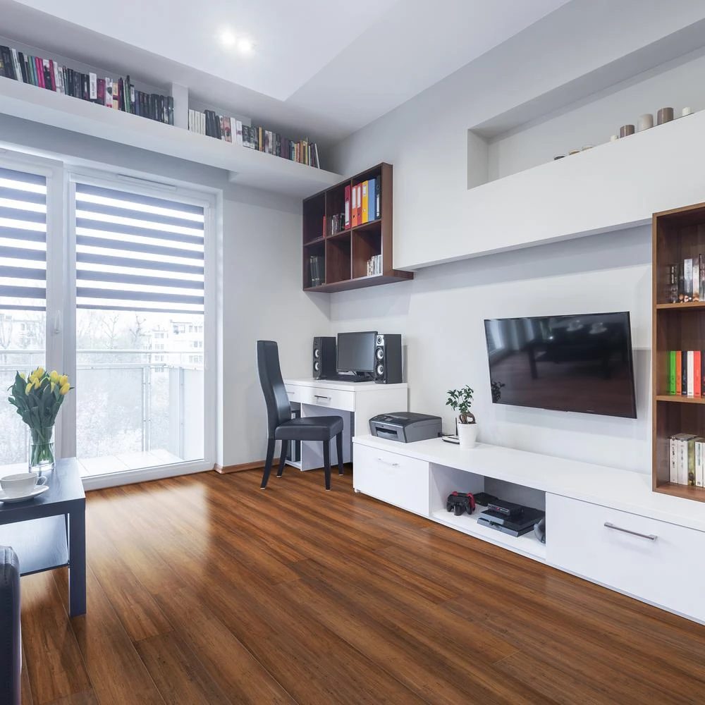 Bamboo flooring offers a beautiful, durable, and highly sustainable way to transform your space. Flooring is strand woven using the Fossilizing method where strips of raw material are finely shredded and compressed under intense pressure, yielding extraordinarily dense planks. This bamboo flooring has earned Janka Hardness testing results in the 5000 range making it 3x denser than solid oak. Harder planks stand the test of time and are better protected from dents, wear, and tear. Bamboo is also a highly renewable resource and a greener way to upgrade your home.