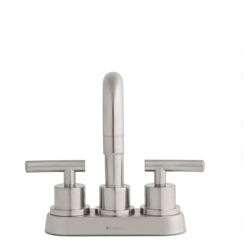 The Dorset 2-Handle High-Arc Bathroom Faucet in Brushed Nickel from Glacier Bay features a sleek and contemporary design that complements a wide variety of decor styles. WaterSense certified, this faucet has a 1.2 GPM water flow rate to help conserve water and ceramic disc cartridges to prevent drips. The 2-handle design and high-arc spout provide easy use and access, while the 1/2 in. connection size and deck-plate mount allow for easy installation. This faucet features the Glacier Bay exclusive ClickInstall drain assembly for quick and simple installation. Pair with other pieces from the Dorset collection for a complete and polished look throughout your bathroom.