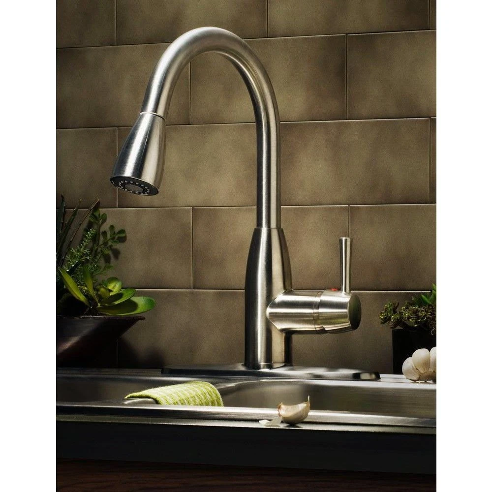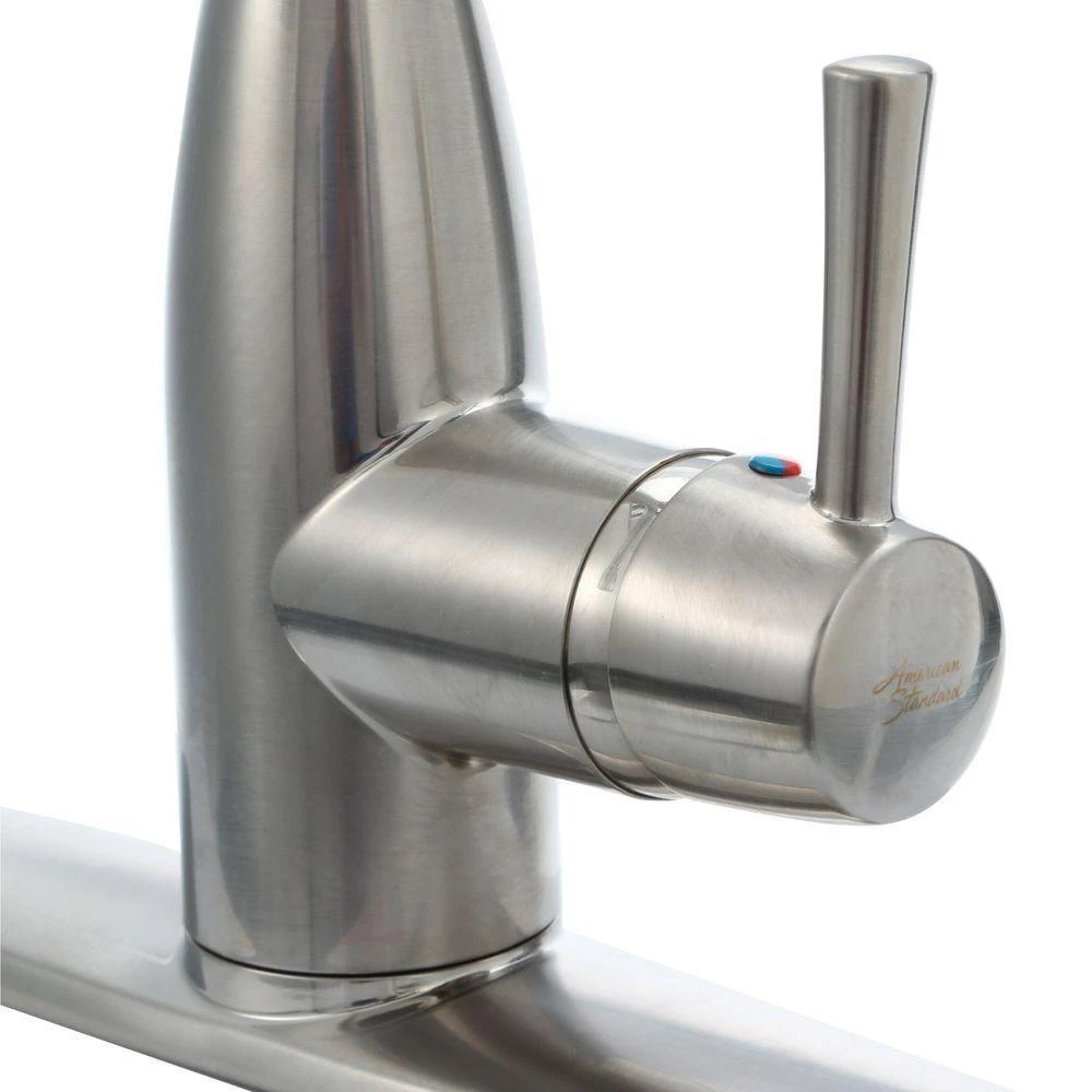 The Fairbury Single-Handle Pull-Down Dual Spray Faucet from American Standard updates your kitchen with statement-making style and superior functionality. This high-arc faucet with swivel spout makes it easy to fill large pots. Ergonomic, pull-down spray head provides a comfortable grip and push-button access to stream, spray and pause functions. This faucet is easy to install in kitchens with 1, 2, 3, or 4-holes in your sink or countertop, making it the perfect choice for any faucet refresh.
