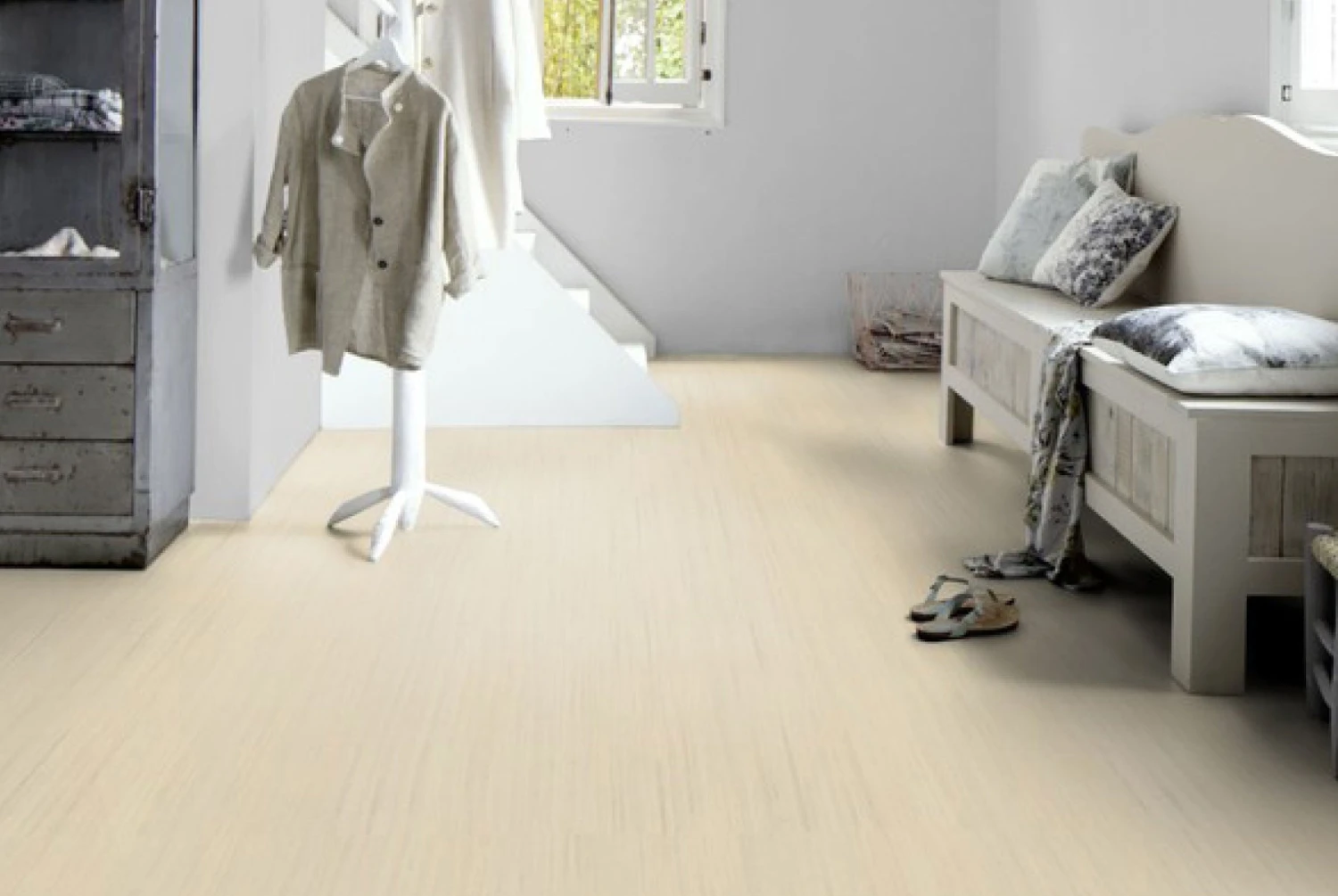 12×36 Plank White Cliffs Carton of 7 planks 20.34 s.f per carton Valinge G5 locking mechanism available in planks only Creating beautiful, custom floors is easy and fun with Marmoleum Click Cinch LOC. This naturally healthy, sustainable, water-resistant flooring consists of linoleum mounted onto HDF with a cork backing for a warm, comfortable, quiet flooring solution. Made primarily from renewable resources, Marmoleum Click Cinch LOC features inherent antistatic and antimicrobial properties that repel dust and dirt, making it easy to clean and reducing exposure to allergens, while inhibiting the breeding of harmful organisms. Marmoleum Click Cinch LOC fits into place using a Valinge 5G locking system for a secure, glue-free installation and can be combined with other Cinch LOC colors for custom interior designs. Available in panels (approx. 12”x36”)Natural, Healthy Flooring, sustainable,
