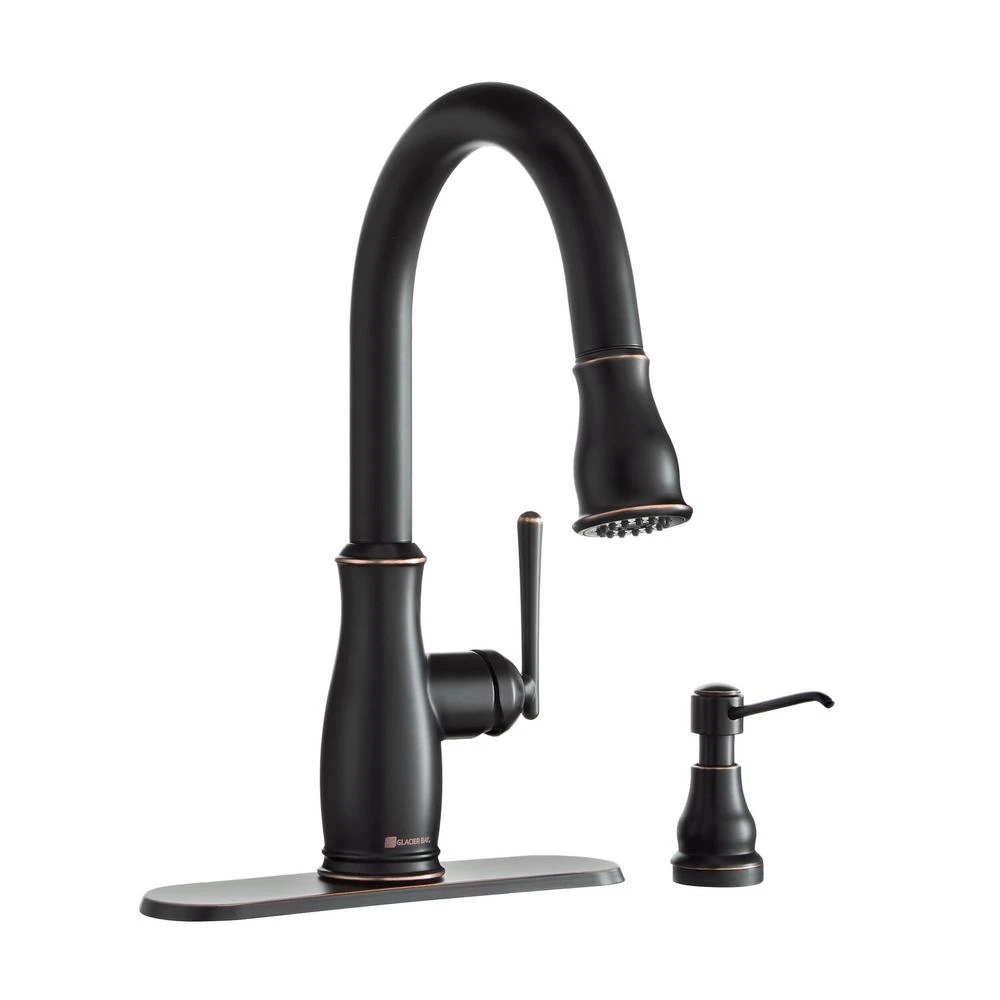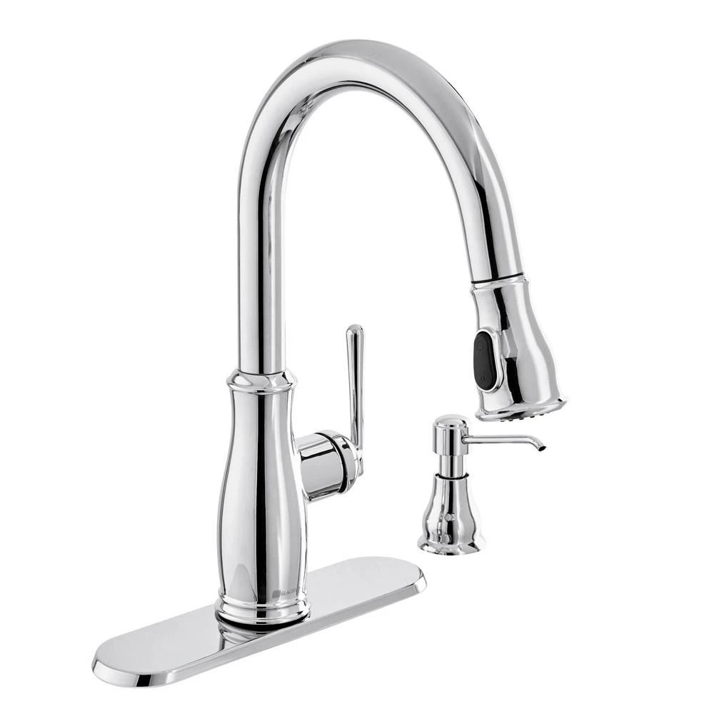 Give your kitchen a polished look with the classically styled Kagan single-handle pull-down faucet, complete with soap dispenser. The flexibility of the pull down operation is enhanced by a dual-function sprayer on a swivel connection that makes reaching any corner of your sink one fluid motion. Even installation is a fast and easy with the Glacier Bay exclusive FastMount installation system.