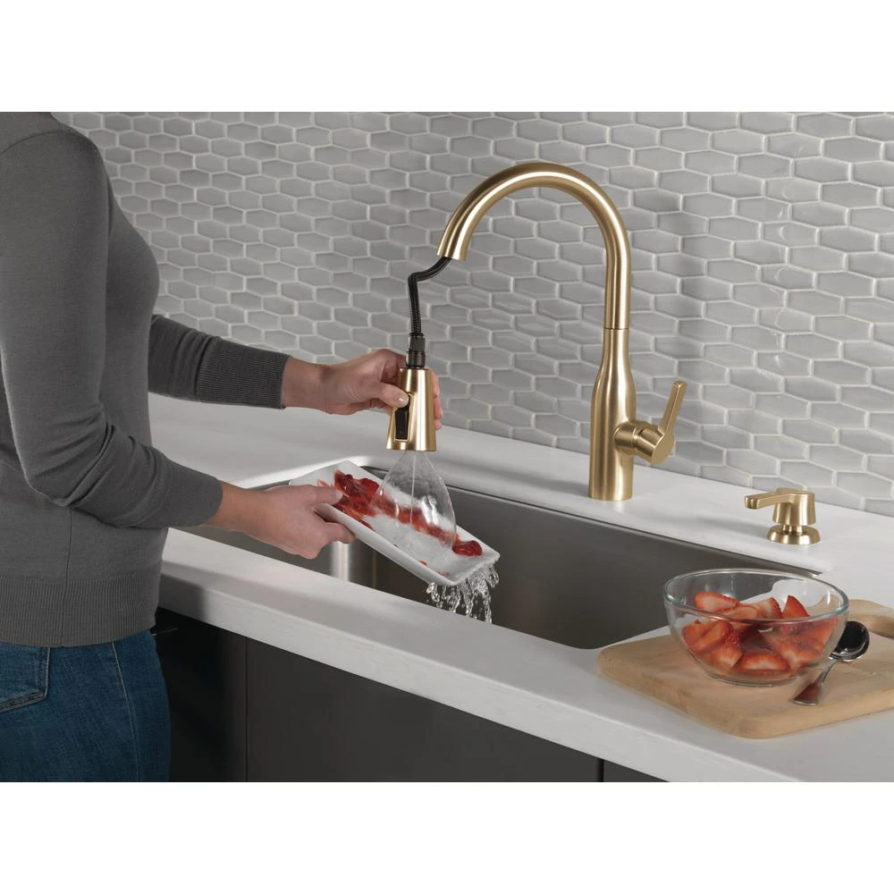 Delta MagnaTite Docking uses a powerful integrated magnet to pull your faucet spray wand precisely into place and hold it there so it stays docked when not in use. Delta ShieldSpray Technology cleans with laser-like precision while containing mess and splatter. A concentrated jet powers away stubborn messes while an innovative shield of water contains splatter and clears off the mess, so you can spend less time soaking, scrubbing, and shirt swapping. Delta faucets with DIAMOND Seal Technology perform like new for life with a patented design which reduces leak points, is less hassle to install and lasts twice as long as the industry standard. Kitchen faucets with Touch-Clean Spray Holes allow you to easily wipe away calcium and lime build-up with the touch of a finger. You can install with confidence, knowing that Delta faucets are backed by our Lifetime Limited Warranty. Industry standard is based on ASME A112.18.1 of 500,000 cycles.