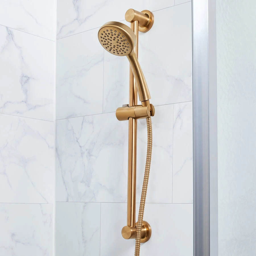 Included 24-in slide bar makes it easy to adjust the hand held shower height