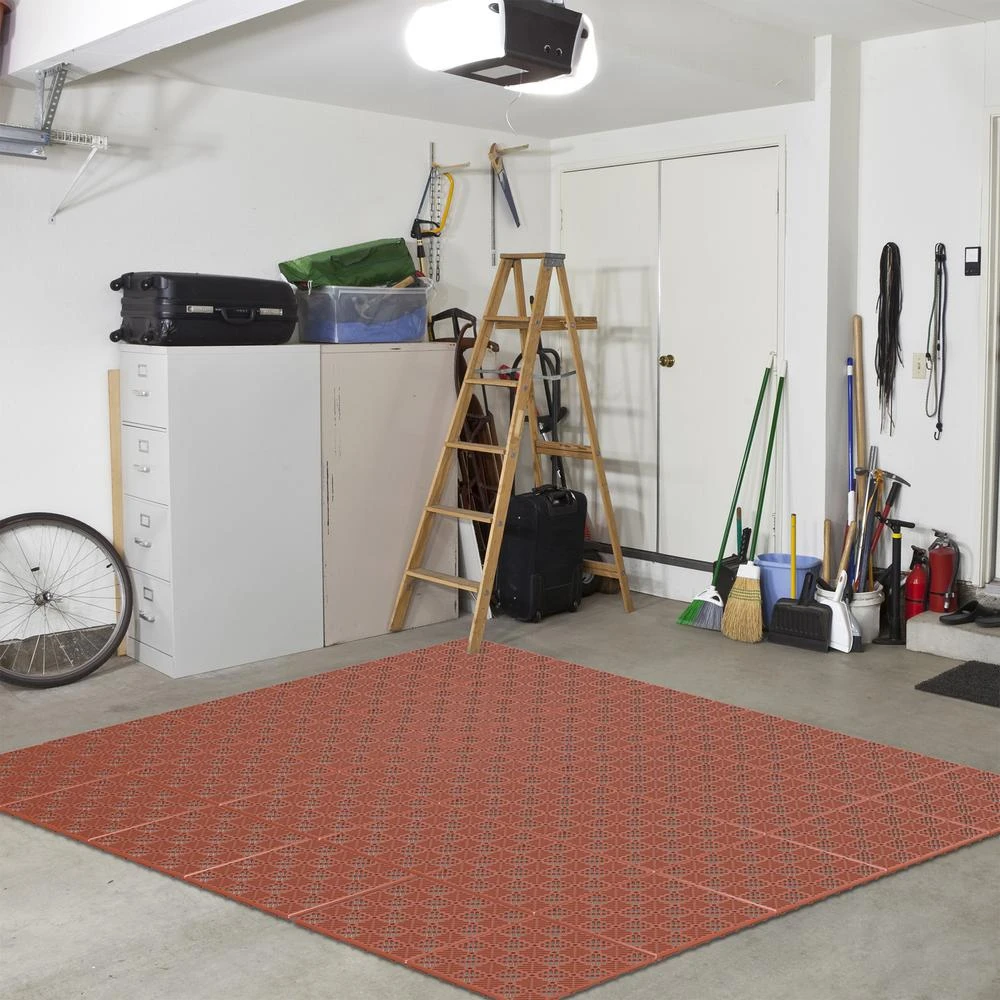 Effortlessly enhance your patio, deck, garage and more with the Pure Garden Interlocking Tile Set. The beautiful orange tiles feature a stylish open pattern design that not only enhance an area, but also provide effective water drainage under normal weather conditions. Each tile sits one half inch above a hard, flat surface to allow a normal amount of water drainage underneath.