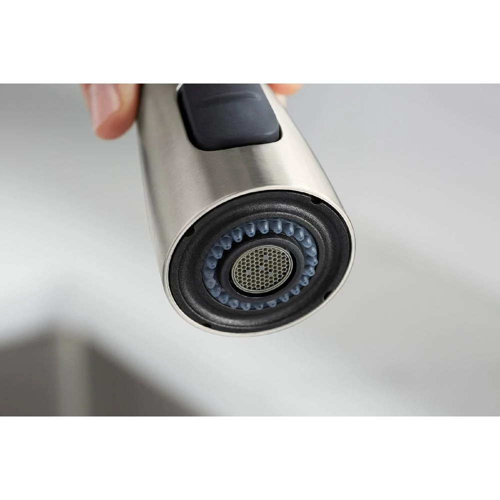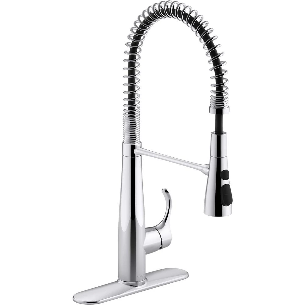 Work like a pro in the kitchen. Inspired by professional kitchens, the Simplices faucet brings elegant design and exceptional ergonomics to home chefs. The pull-down spray head lets you switch between 3 functions with pushbutton ease: an aerated stream for filling pots and pitchers; Sweep spray for cleaning; and Boost function for increased flow. The high-arching coil spring removes for easy cleaning.