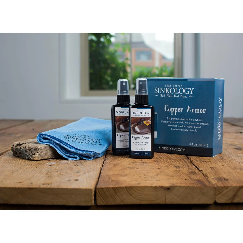 - Kit includes: SINKOLOGY copper sink, Pfister 4 in. single handle faucet, drain and copper armor care kit