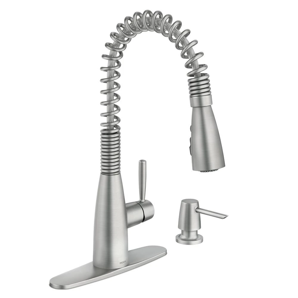 A perfect addition to your kitchen, this Single-Handle Pull-Down Sprayer from the Springvale collection features a spot resistant stainless steel finish that helps keep your kitchen looking cleaner by resisting fingerprints and water spots. Each faucet includes power boost technology that easily produces 50% more spray power than other faucets. The self-retracting hose system offers smooth operation and docking while the Duralock quick connect system makes for a quick and easy installation.