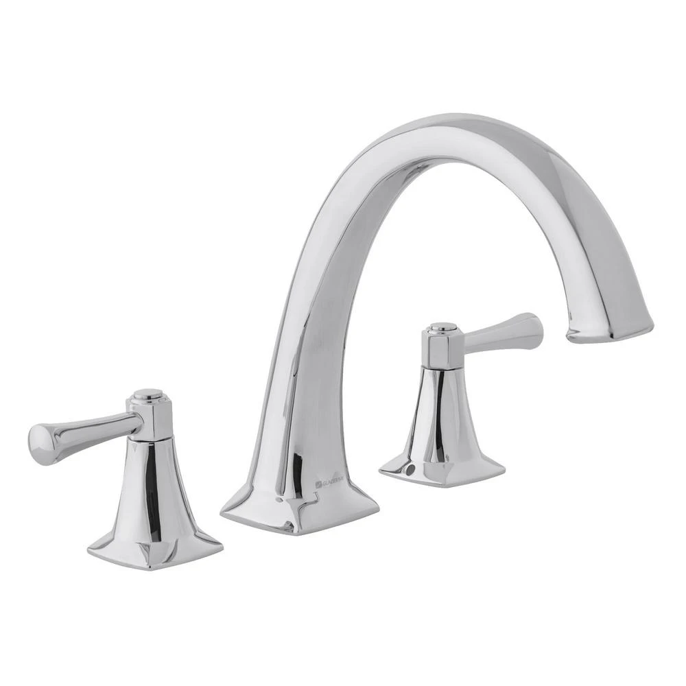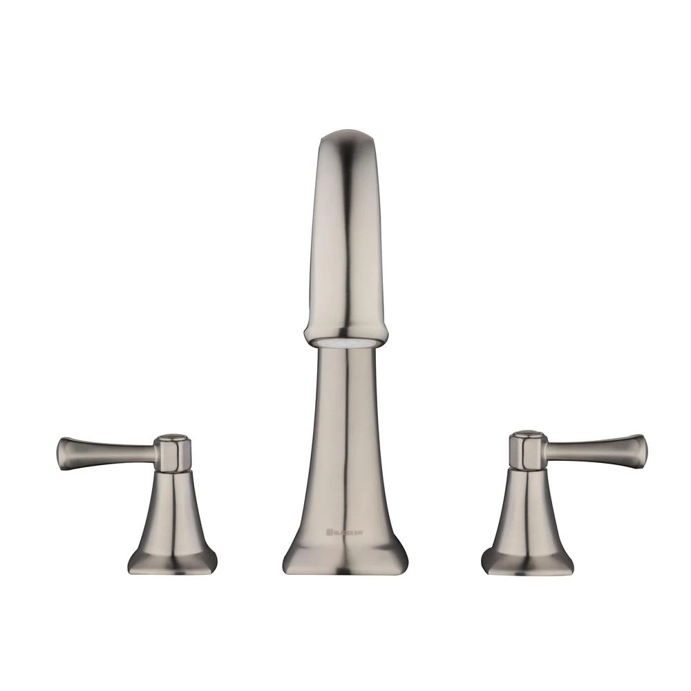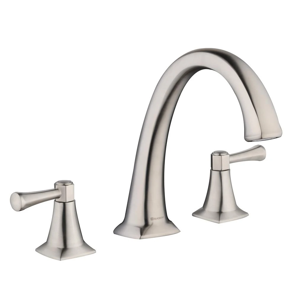 Striking and elegant, this Glacier Bay Stillmore 2-Handle Deck-Mount Roman Tub Faucet in Brushed Nickel will complement any decor. The 2.4 GPM flow rate provides excellent water pressure for a superb bathing experience. Ceramic disc valves ensure drip-free performance. The beautiful high-arc spout provides extra clearance and the two-handle design features separate handles for hot and cold water for precise adjustment. Pair this roman tub faucet with other products in the Stillmore collection for a cohesive look for your bathroom.