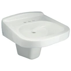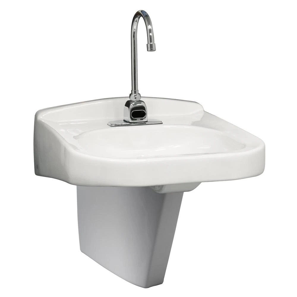 Meet ADA compliance with Zurn’s Z5324-PED wall-mounted handicap accessible sink. It’s designed for access by people in wheelchairs and to be used in conjunction with a concealed arm carrier system. With its high-gloss vitreous china finish, it’s stain-resistant, sanitary, and durable. It features a front overflow design with a depth of 3 ½ inches, a 1 ¼-inch drain opening, and an optional right or left side soap dispenser hole. This model comes with a half pedestal, also in vitreous china, for extra support and aesthetics. Pair it with your choice of Zurn’s manual or sensor-operated 4-inch centerset faucets for a complete package. When you need an ADA commercial bathroom sink, the Z5324-PED wall-hung lavatory is an easy, durable solution.